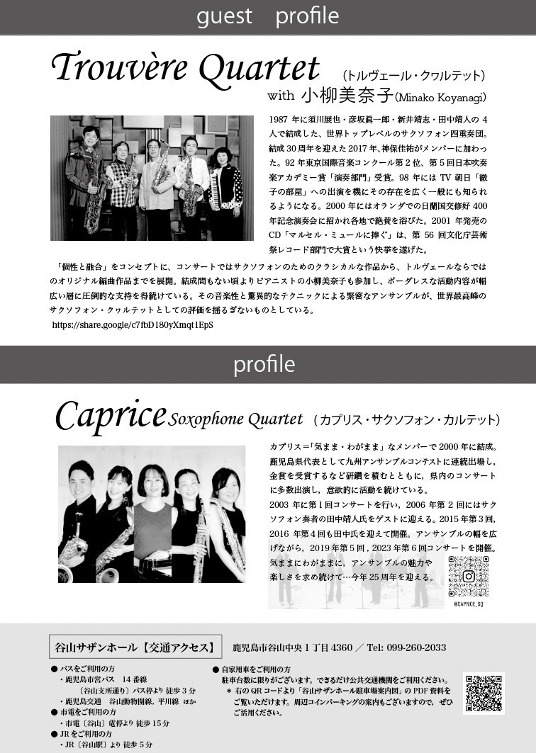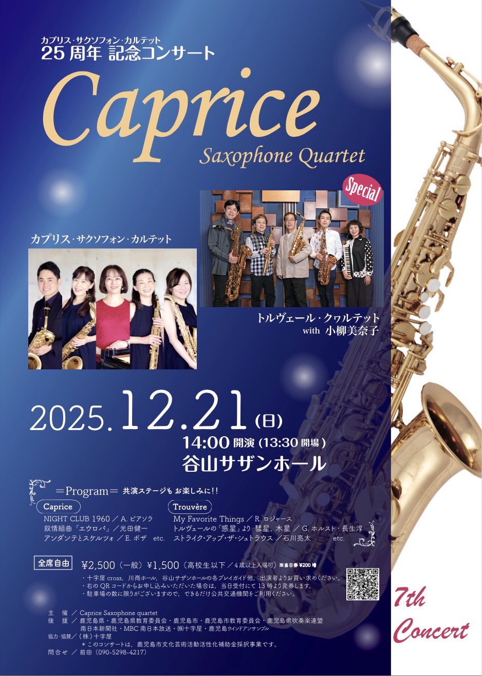 カプリスサクソフォンカルテット25周年記念コンサートのご案内